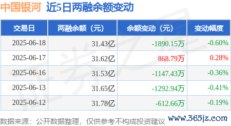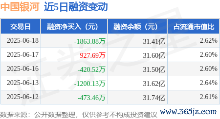 本站消息配股宝,6月18日,中国银河(601881)融资买入9641.99万元,融资偿还1.15亿元,融资净卖出1863.88万元,融资余额31.41亿元。